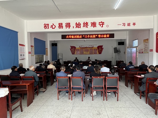 10月19日,大通镇刘跳村开展“三个以案”警示教育专题学习会议,刘跳村党员干部参加会议。