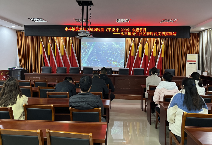 临近年终岁末,交通风险隐患增多。为进一步增加辖区内党员群众交通平安意识,造就平安出行和文明交通行为习惯,12月9日,永丰镇民生社区组织社区党员干部观看《平安行·2022》专题节目。