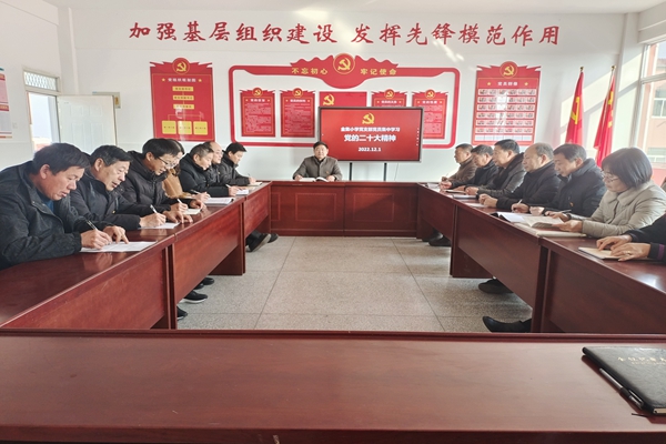 党的二十大报告提出,“坚持以人民为中心发展教育,加快建设高质量教育体系,发展素质教育,促进教育公平”。校党支部书记高德文带领全体党员教师认真学习党的二十大报告,深刻领会党的二十大的主题,学习党的二十大报告中关于教育的重要论述,让党员们学懂弄通党的二十大报告的精髓要义。