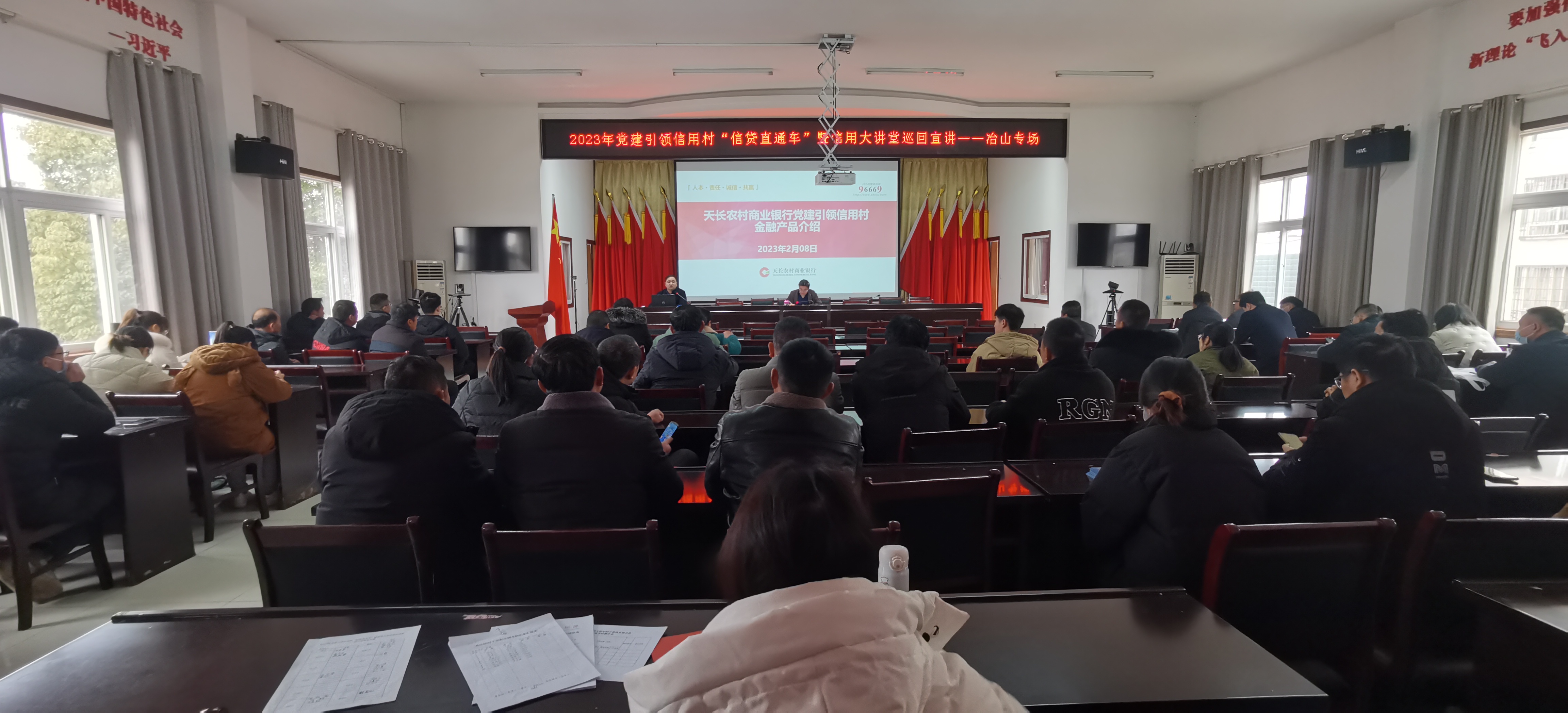 为普及宣传党建引领信用村建设,增强全民树信、增信、用信意识,切实让百姓感受到信用带来的优势,冶山镇政府联合第三方信用服务专业机构,在镇政府二楼会议室召开“2023年党建引领信用村‘信贷直通车’暨信用大讲堂巡回宣讲-冶山专场”。