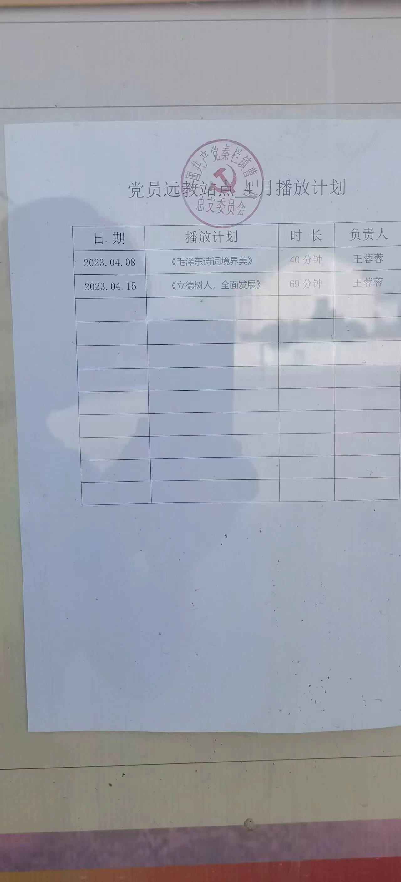 2023年4月8日,曹三村制定4月份党员远程教育播放计划并进行公示。
