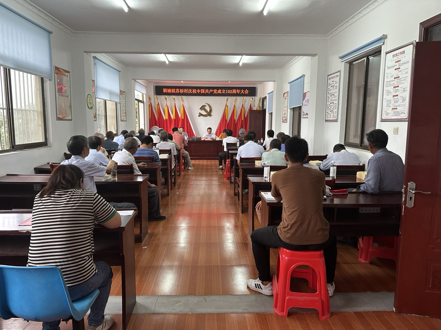 2023年7月1日上午,铜城镇苏桥村召开“七一”党员大会庆祝中国共产党成立102周年,会议主要议程如下: