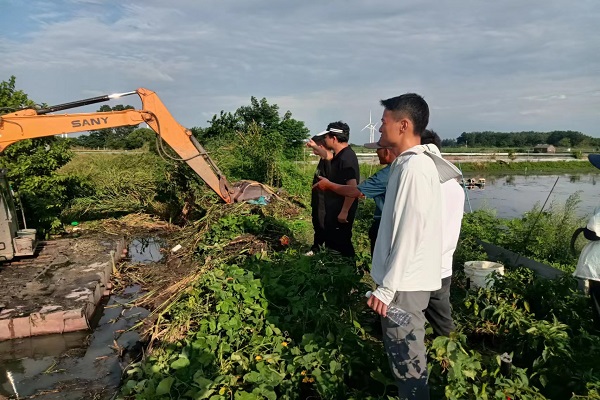 南尖回民村地处圩区,是上游村社区排涝的最后一站,为了提高排水设施雨季防汛排涝能力,避免因沟渠堵塞引发水患,南尖回民村组织专业施工队伍全面开展清淤工作,确保汛期排水沟渠畅通。