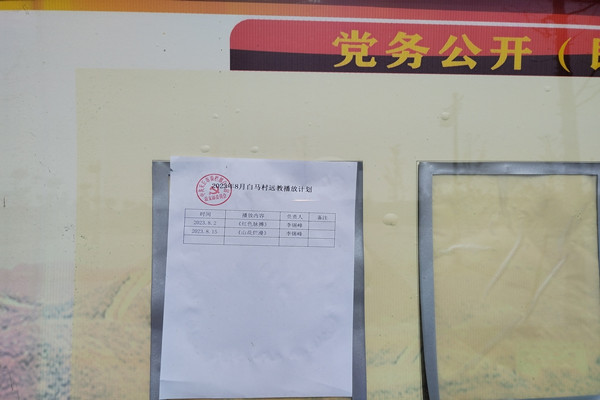 2023年8月2日,白马村制定8月份党员远程教育播放计划并进行公示。