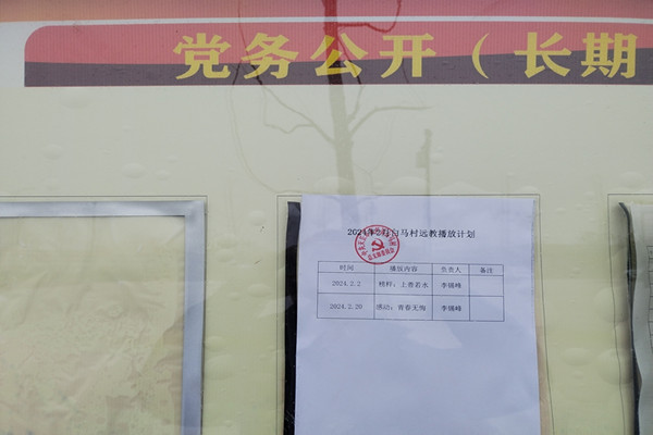 2024年2月2日,白马村制定2月份党员远程教育播放计划并进行公示。
