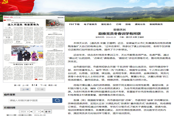 近日,安徽省天长市仁和集镇流动党员胡清梅准备扩大自己的电商业务,“过年在家时,我参加了镇上的培训班,老师不仅讲理论还教我们如何做农业电商,提供了不少新想法。”