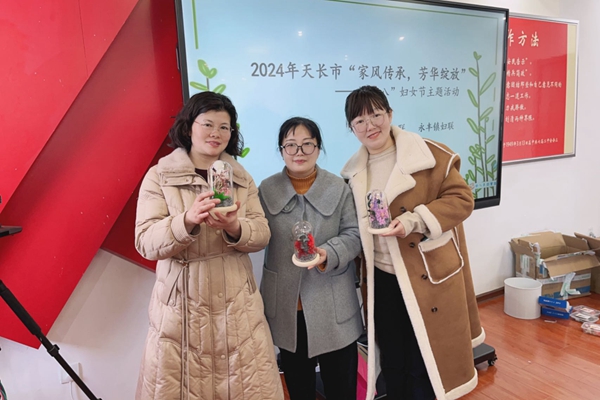 主题活动以座谈会的形式开展,该镇妇女干部们积极发言,分享好的家风家训、畅谈节日感受,现场气氛非常温馨、欢声笑语充盈着整个活动现场。大家纷纷表示,通过交流家风家训的故事,收获满满,感悟颇深。活动还邀请了花艺老师,教大家手工制作永生花。老师热情地向大家讲解永生花的寓意以及制作方法。随后,现场的妇女同胞们纷纷开始挑选花枝,搭配颜色,精心设计,用胶水定型,她们享受着创作的乐趣和花艺带来的愉悦。不一会儿,一件件别具一格、精致优雅的永生花作品就制作好了,一一呈现在大家的眼前。大家其乐融融,脸上洋溢着喜悦的笑容。