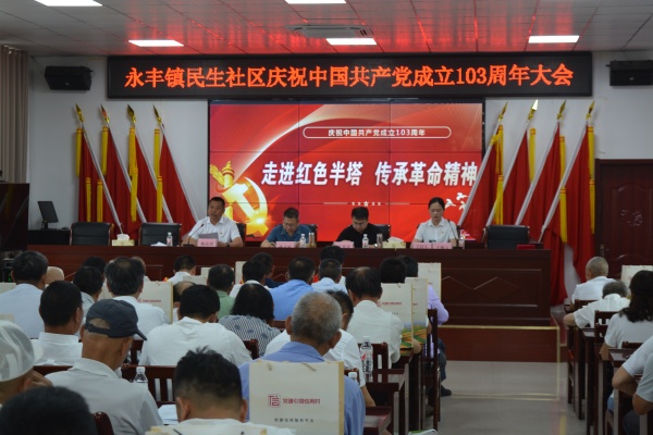 一开始,在半塔镇奇辉社区召开了庆祝中国共产党103周年大会。会上,首先,全体党员在民生社区党总支副书记的带领下,面向党旗重温入党誓词,进一步坚定理想信念,树牢初心使命。之后,由民生社区党总支书记进行了上半年度工作汇报、由永丰镇人大主席上了一节题为《恪守“六大纪律”筑牢思想根基》的专题党课,教育党员干部要学纪、知纪、明纪、守纪,激发担当作为、干事创业的内生动力。最后,分别给“光荣在党50年”同志和“优秀居民组长”颁奖,通过树立榜样,激励先进,营造了崇尚先进、见贤思齐的浓厚氛围。