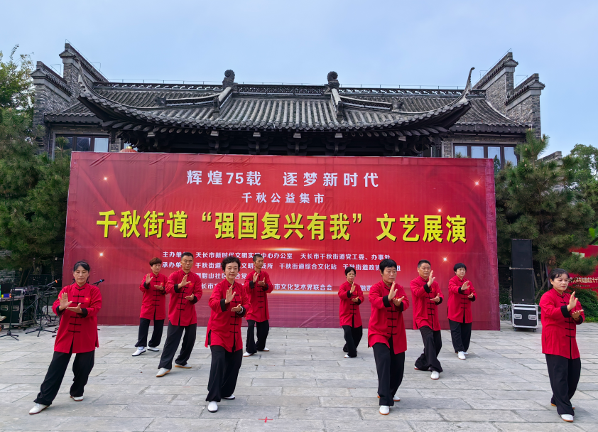 9月30日上午,由天长市新时代文明实践中心办公室、千秋街道党工委、办事处联合主办,政协联络组、胭脂山社区联合党委等承办的“辉煌75载 逐梦新时代”庆祝中华人民共和国成立75周年暨“强国复兴有我”文艺展演活动在西月城举行。
