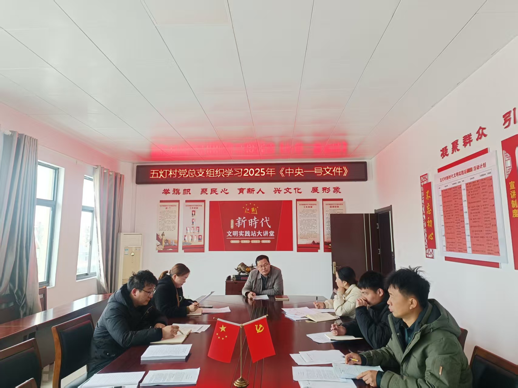 铜城镇五灯村党总支于2025年3月10日上午,组织全体村干部学习《关于进一步深化农村改革扎实推进乡村全面振兴的意见》。会议由村党总支书记杜仙童同志主持并带领班子成员共同学习。