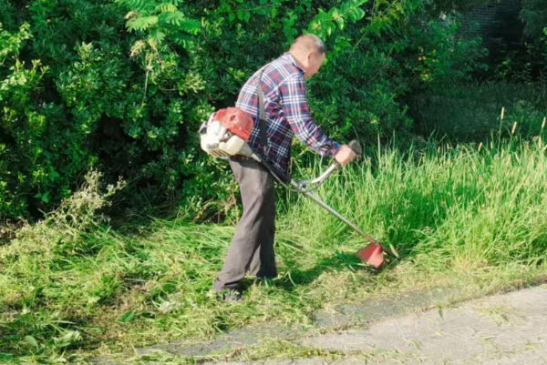 8月19日,天刚蒙蒙亮,桑园村组织人员对辖区内村道旁、绿化带内、沟渠边,大家顶着炎热的天气,有人握着修剪机给草坪“理发”,参差不齐的草叶被修得整整齐齐;有人蹲在沟渠旁割杂草,汗珠子砸在路上洇出小湿痕;还有人推着清运车,把犄角旮旯的垃圾一一清走。