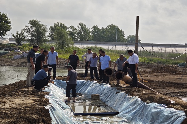 “再加快些进度,这抽水管道早一点架好,庄稼就早一点喝上水!”在村边的河塘旁,村干部一边擦着额头的汗,一边给施工的村民们加油鼓劲。烈日下,十几名村民分工明确,有的铺设电缆,有的对接抽水管道,大家顾不上晒得黝黑的皮肤和湿透的衣衫,专注于手上的活计。