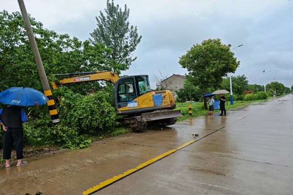 在田间地头,挖机无法作业的地方,就组织群众和干部一起拿铁锨进行挖沟排水,在挖机可以作业的地方,则使用挖机开沟排水等措施疏通田间内部沟渠,打通入河排水干沟,保证积水顺利排出。同时,龙集社区还积极协调解决抽水机进行强排,将田间积水排入沟渠,目前社区全域排涝站正在全天候作业,力争将农田损失降到最低。