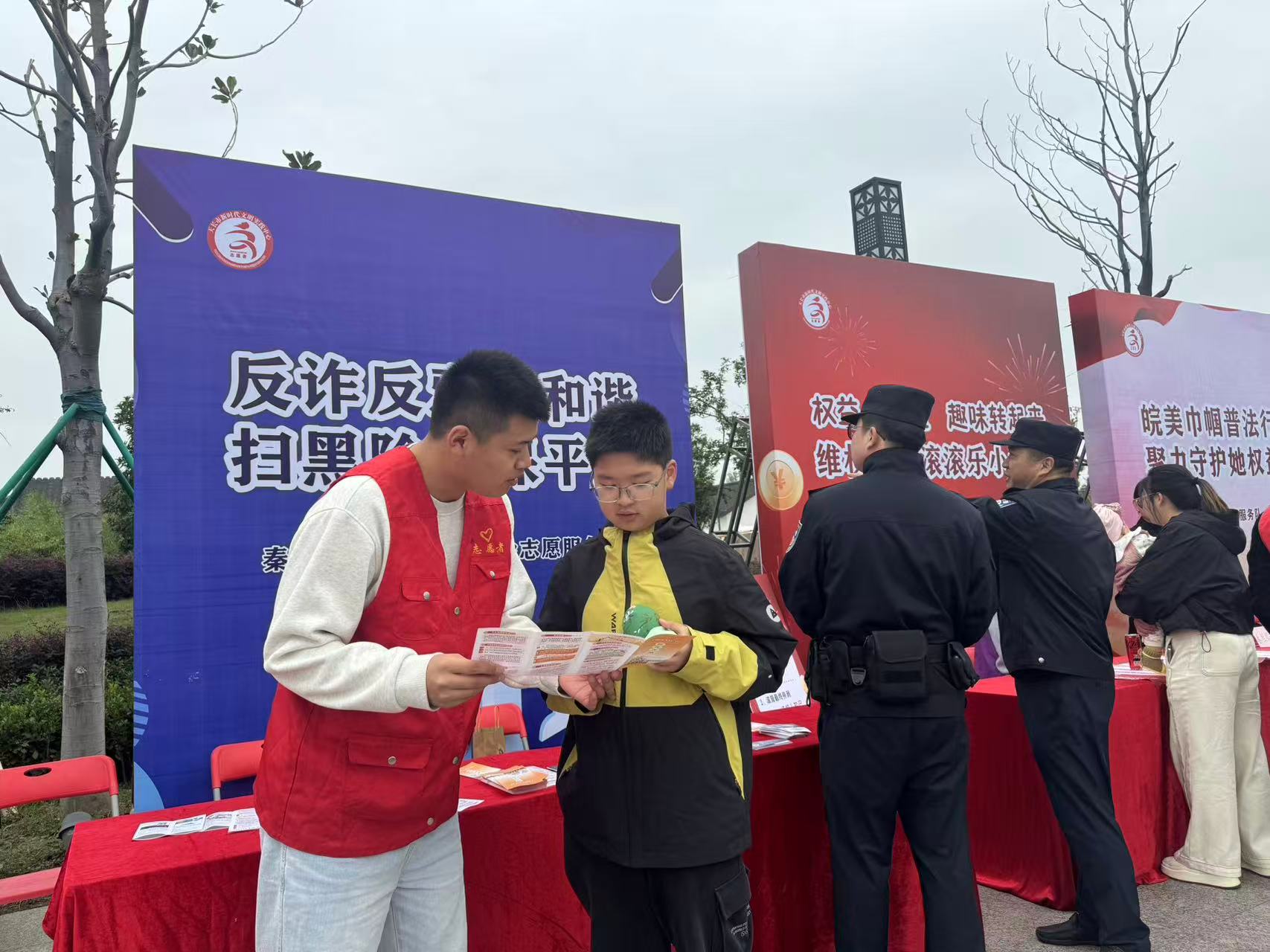 喧腾的非遗展示区旁,一抹抹“平安蓝”“巾帼紫”与“志愿红”格外醒目。宣传专班精心设置综合服务台,通过“靶向讲解+实地宣传+便民服务”三维模式开展宣传。综合服务台细分五大咨询窗口:矛盾纠纷化解窗口由“孝爱调解”专员进行介绍,详解劳资、宅基地、婚姻家庭等纠纷的调解流程,现场发放“矛盾线索卡”,告知群众“家门口的和事佬”网格员联系方式;反电诈窗口由民警手把手指导安装国家反诈中心 App,拆解“虚假投资”“冒充电商客服”等新型骗局;反邪教窗口村干们通过漫画手册揭露邪教本质,普及识别与抵制技巧;扫黑除恶窗口由民警公布举报电话与奖励机制,讲解“村霸”“套路贷”等黑恶势力表现形式;司法窗口则由法治副校长提供咨询,发放《青少年法律手册》,普及《民法典》,对预防未成年人违法犯罪内容进行重点强调。