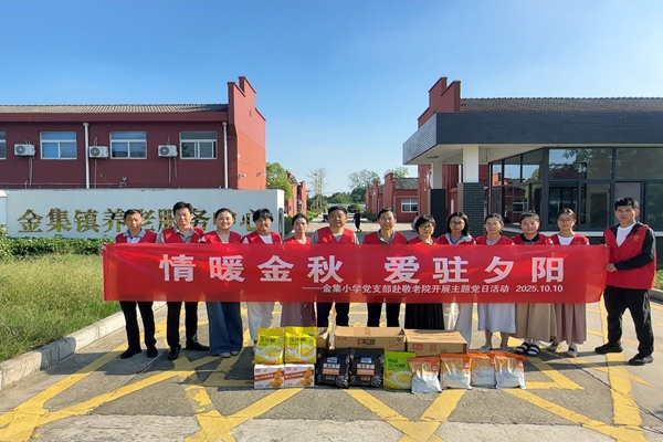 校社联动传温情,厚植奉献情怀。党支部深化“党建 + 公益”实践,搭建校地联动服务平台。结合传统节日开展特色志愿服务,重阳节期间组织党员教师带领20 余名学生走进金集敬老院,开展“温情陪伴”活动,为老人打扫房间、表演文艺节目、赠送礼品等,累计服务老人30 余人次,用实际行动传承敬老美德。