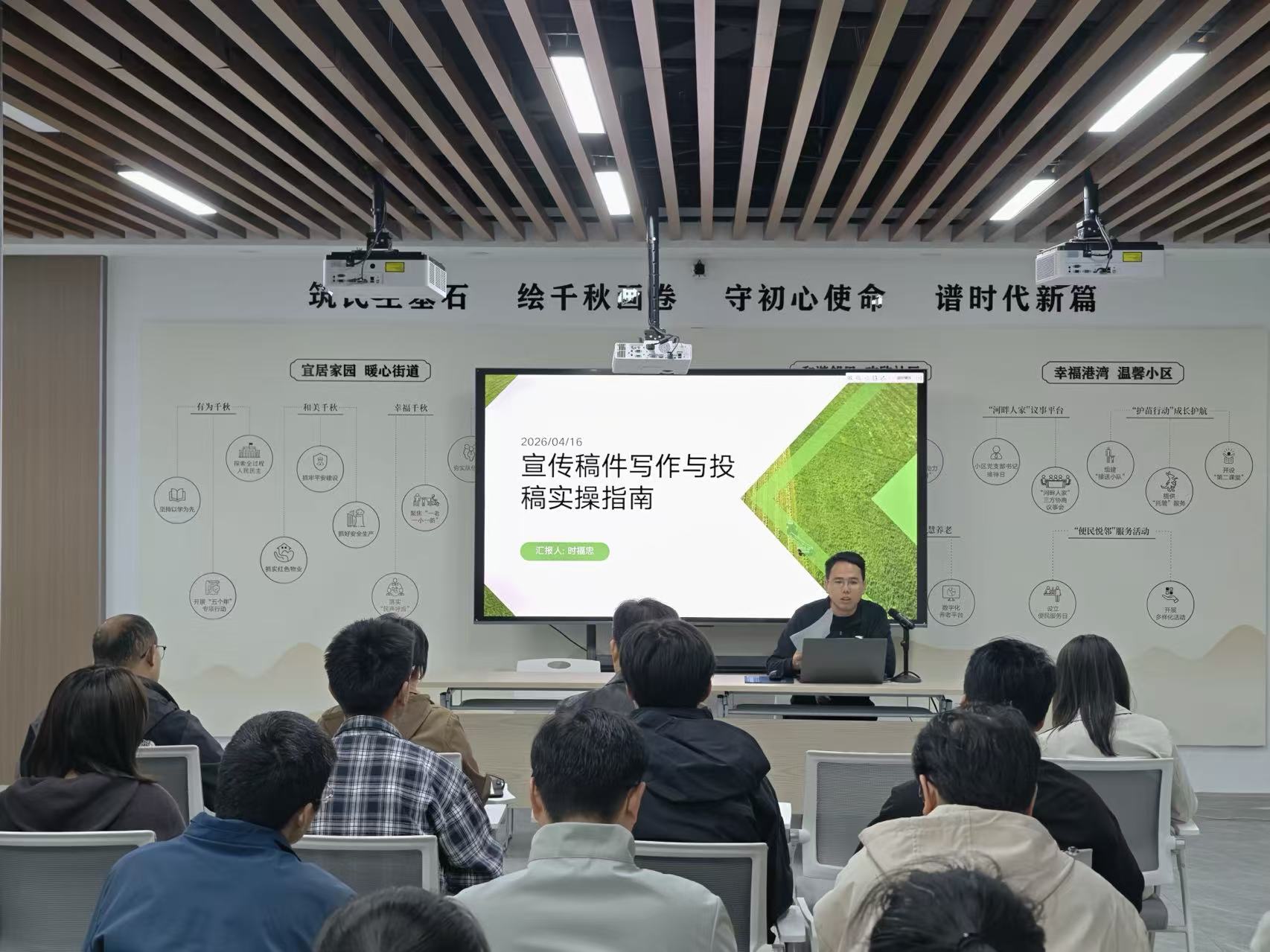 4月16日上午,千秋街道“练就笔杆子”年轻干部主题沙龙在碧桂园壹号公馆小区党群服务站举办。本次活动旨在锤炼年轻干部文字综合能力,提升基层宣传质效,为干部成长搭建交流互鉴平台,街道多位年轻干部参加此次活动。